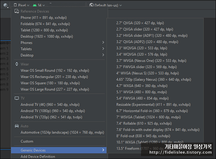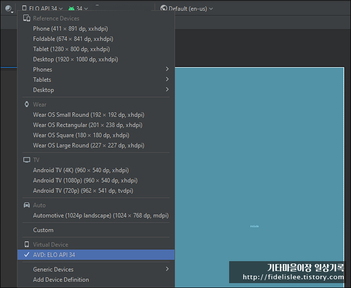 그런데... Editor에서 화면사이즈가 맞는 Profile을 찾으려 해도... 개발 중인 단말에 적당한 화면사이즈를 찾을 수가 없었다;;;